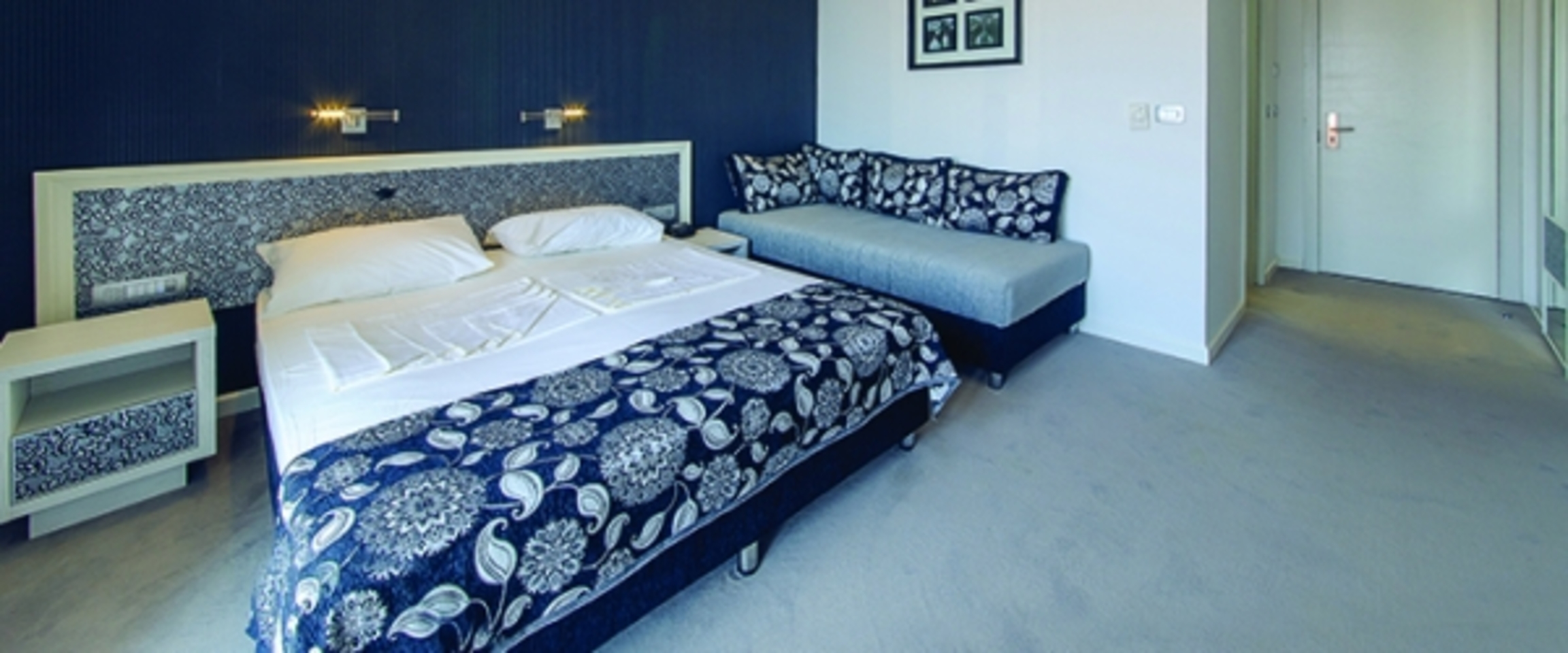 The hotel facilities include a modern SPA center with the large indoor pool and whirlpools, sauna and massage rooms, an outdoor swimming pool - both for adults and children, three bars, conference hall, kids club, children playground, two-story parking garage, mini market…